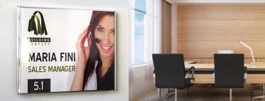 Die Einlagekarten werden über den Office-Drucker angefertigt. Schild einfach öffnen, Karte einlegen, schliessen - fertig!