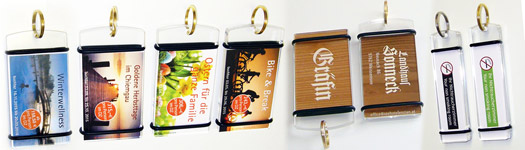 Hotel-Schlüsselanhänger wie gehabt haben alle. Aus Messing, Alu, Holz, Plastik, … Mit Zimmernummer - fertig.