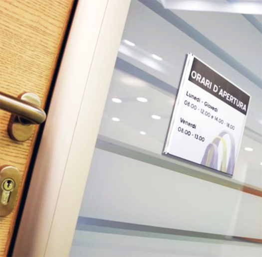 Handling: Mit wenigen Handgriffen zu aktualisierendes Schild (Ausdruck der Einlageblätter via PC).